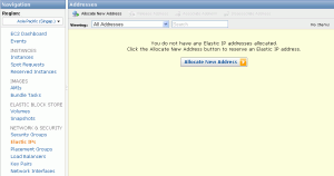 By default, our instance will only have internal IP. To make the instance have an external IP. We need to use Elastic IP. On the EC2 Navigation Panel, click Elastic IPs: