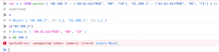 As we can see, when calling the object property directly (e.g. o.A0.100.3), we received the same exact exception as when we tried to load this string to grid. Therefore, we can conclude that deep down inside data store creation, the input object property was called directly instead of using array interface (e.g. o[“A0.100.3”]).